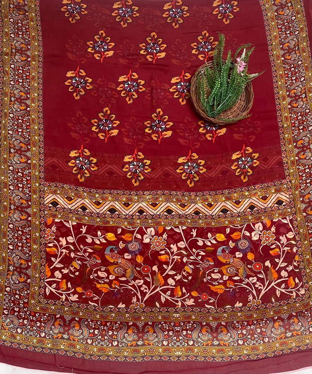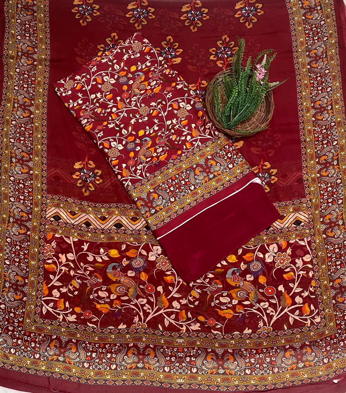 Tassar Cotton Maroon Suit Fabric / Tassar Suits